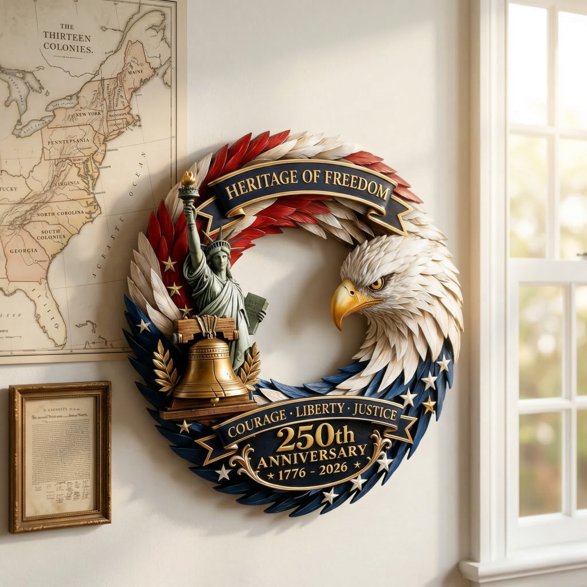 - Customizable Text: Top banner reads HERITAGE OF FREEDOM, lower banner displays COURAGE • LIBERTY • JUSTICE to celebrate 1776–2026.