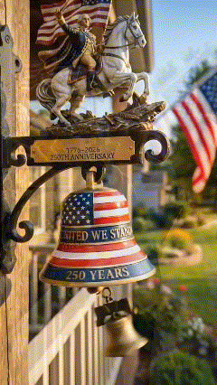 🌟 This handcrafted wall bell honors the 250th Anniversary of American Independence (1776–2026). Featuring a detailed sculpture of George Washington riding into battle, waving the Stars and Stripes, it merges patriotic art with functional design—perfect for history lovers, collectors, and anyone proud to celebrate America’s journey.